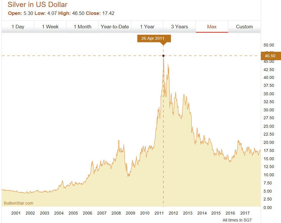 $ auf 1.240 $ in sieben Jahren. Würde Silber die gleichen Kursgewinne