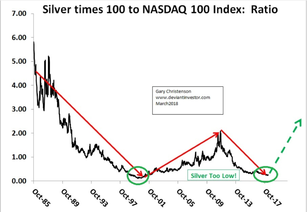 finde ich die Grafik zur Quote Silber / Nasdaq 100 besonders interessant (siehe Anhang).