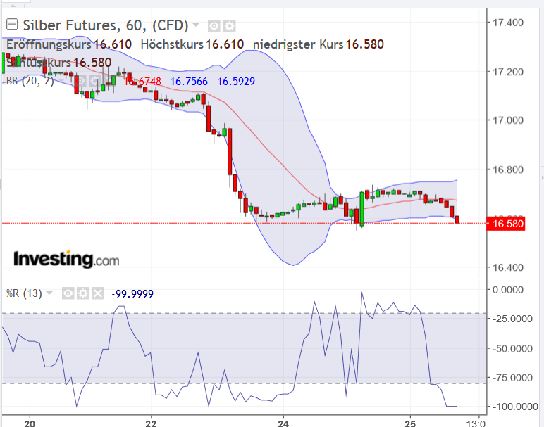Silberkurs ha bei 16,61 $ nordwärts gedreht...