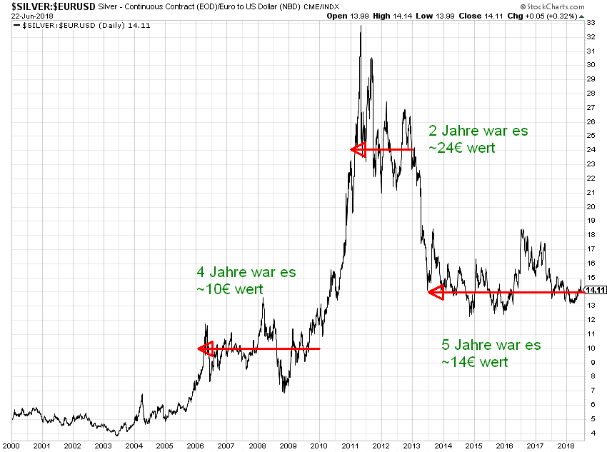 Wie man beim Silberchart in € sieht: