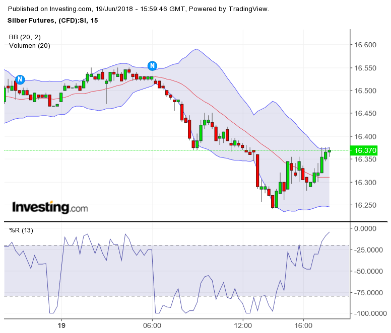 Bei Silber endete gestern der rasante Kursverfall exakt an der Aufwärtstrendlinie (16,45 $), die sich seit dem Tief am 01.05.2018 bei 16,05 $ ausgebildet hat.