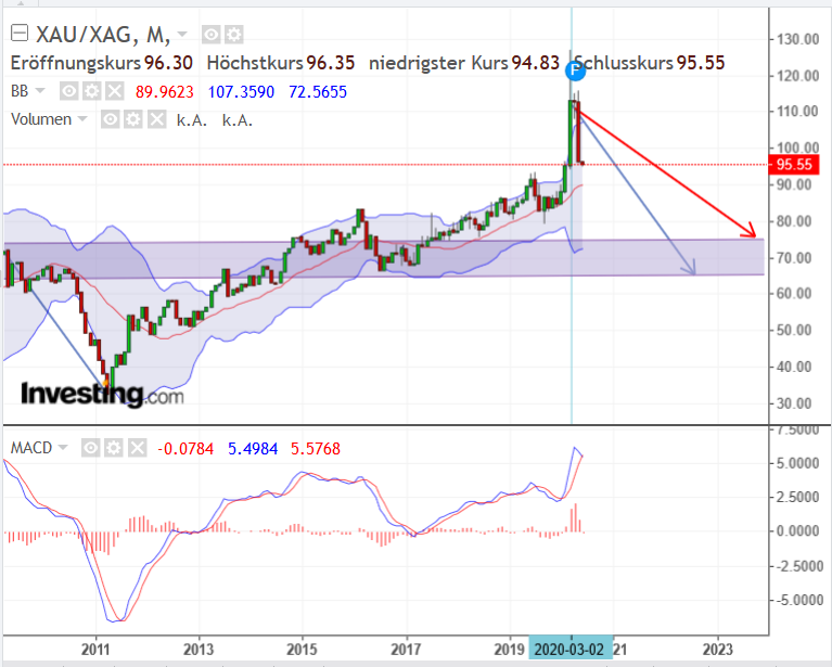 Also sollte Gold stabil bleiben, dann könnte Silber 15% verlieren...
