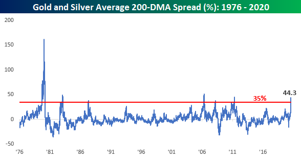 On an average basis, Gold and Silver are trading 44% above their respective 200-DMAs: