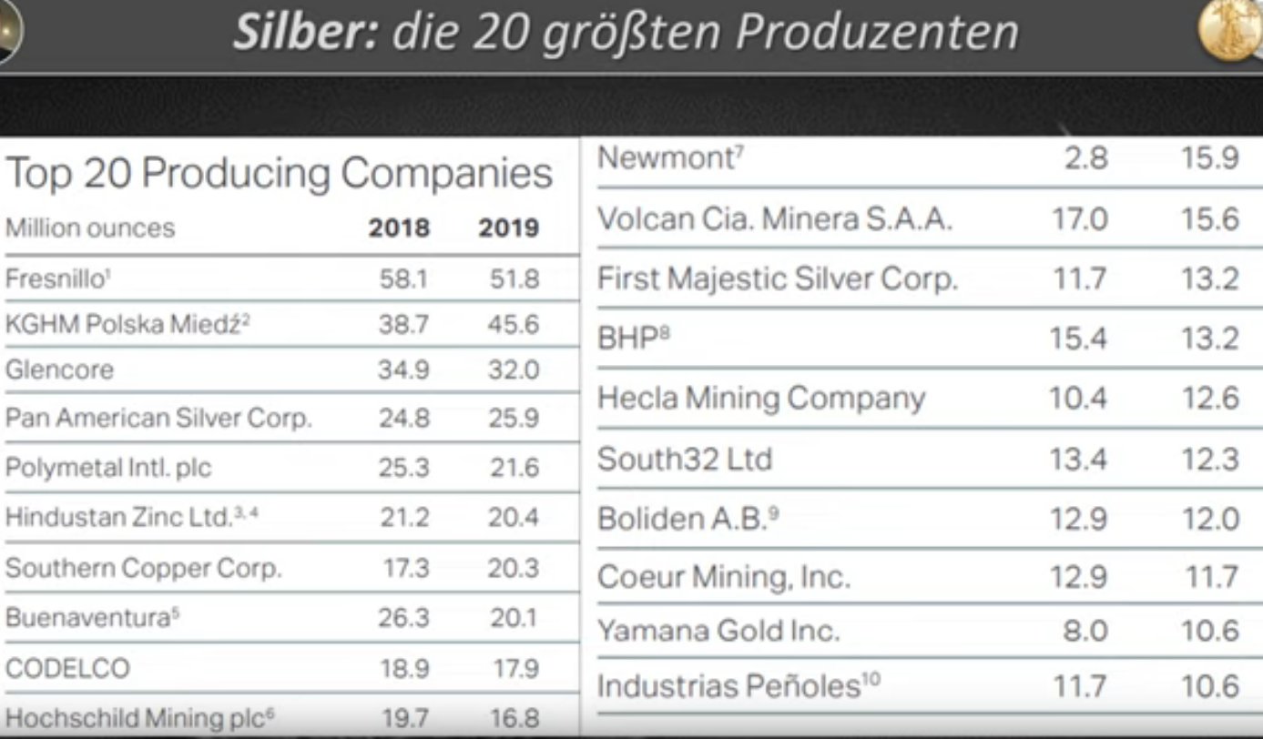 Die Jahresproduktion von Silber betrug 2018 26.900tonnen=26.900.000kg=26.900.000.000gramm=864.868.341Unzen