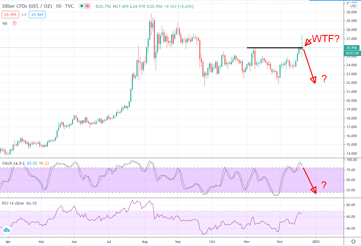 Ja , nicht so einfach auszuloten ,wieviel Luft Silber nach unten bzw. nach oben im Moment noch hat..., deshalb habe ich mich vom RSI auch mal inspirieren lassen.....: