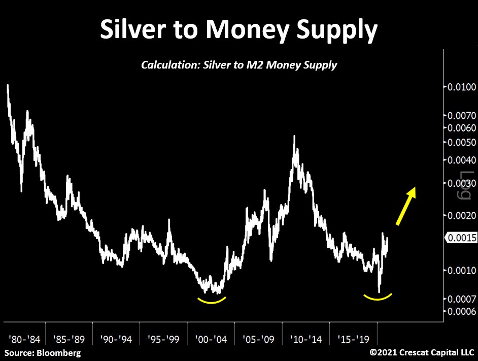 Silber zur Geldmenge, bzw. dann im Endeffect deren Ausweitung, selbst wenn die Commies nicht weiter drucken sollten (hahaha) ist da noch Potential zum Aufholen da, ca. Faktor 3-5