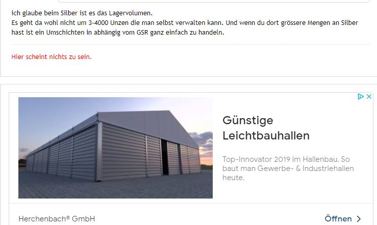 Es geht da wohl nicht um 3-4000 Unzen die man selbst verwalten kann. Und wenn du dort grössere Mengen an Silber hast ist ein Umschichten in abhängig vom GSR ganz einfach zu handeln.