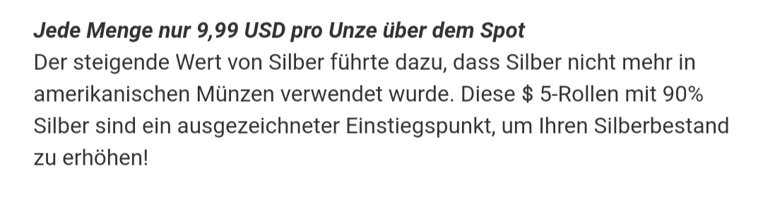 Ihr müsst den Satz richtig lesen only 9,99 $/oz over Spot NICHT pro oz