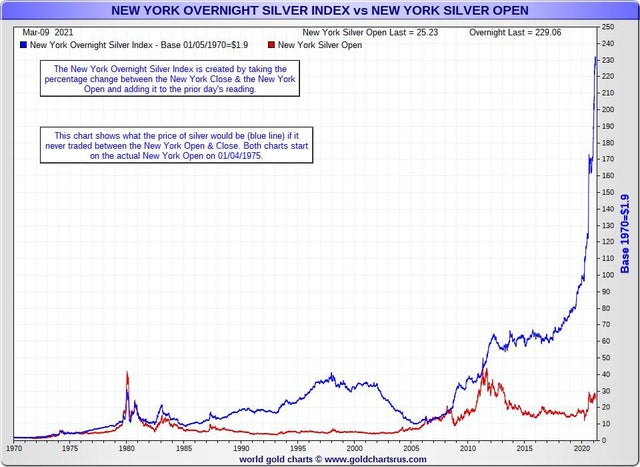 Deshalb gibt er einen Einblick wie sich Silber entwickelt hätte , wenn es keinen Nachthandel geben würde.