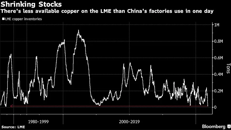>47 yr. low caused by companies hoarding metals from warehouses (90% cancelled warrants) due to expected metals deficits