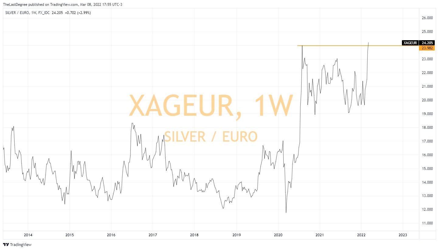Silber in Euro macht heute ein Dekadenhoch ![]()