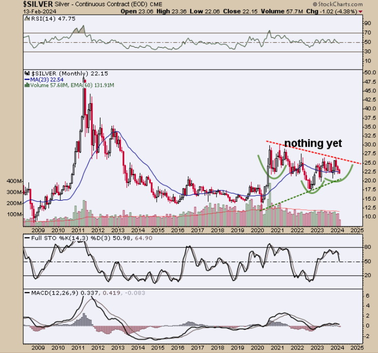 Sorry, aber bei Silber werden wir noch sehr lange warten müssen, bis sich da mal spürbar etwas bewegt.