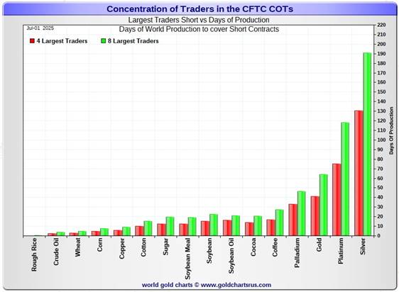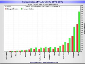 Den Daten dieser Woche zufolge sind die „Big 4“-Händler bei der weltweiten Silberproduktion für 130 Tage short. Das ist etwa 1 Tag weniger als im letzten COT-Bericht. Die großen Händler der Kategorien 5 bis 8 haben eine Unterdeckung von weiteren 61 Tagen der weltweiten Silberproduktion...."