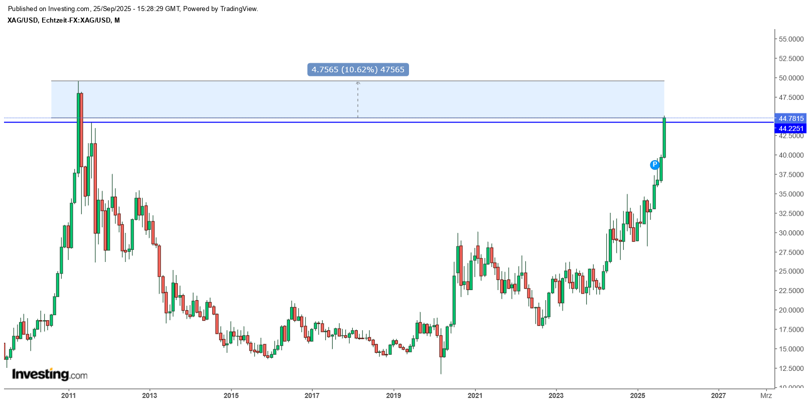 Umso erfreulicher aber, daß die gewaltigen Marktkräfte Silber stetig nach oben treiben auf heute nahezu Höchststand...