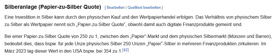 Und wenn man bedenkt, dass der Silberabbau in Deutschland 1994 komplett eingestellt wurde, weil es sich bei 3 Euro / Unze nicht mehr lohnte.