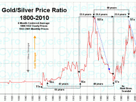 Er weist auch auf das steigende Verhältnis Silber : Gold hin :