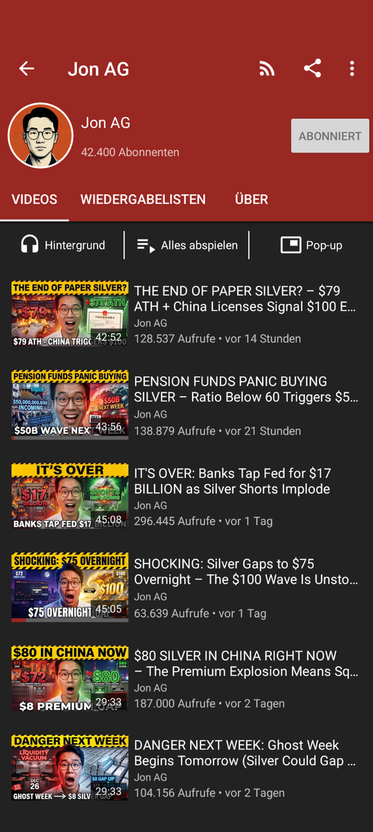 Das macht es für mich nicht vertrauenswürdiger. Nur schwieriger nachzuvollziehen. Wenn die "fehlgeschlagene Vorhersage" über die angebliche Geheimsitzung bzgl "wir stoppen Silber bei 75 Dollar" nicht mehr da ist, auch nicht.