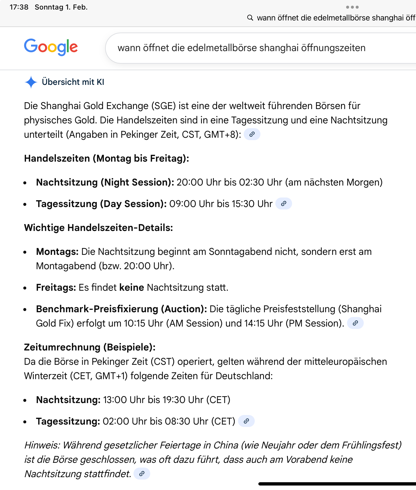 • Die Nerven liegen blank: Silberpreis stürzt ab – droht Silber am Montag bereits das nächste Preisbeben? - 01.02.2026 https://share.google/xMZbrrLh0ZNYRSvD4