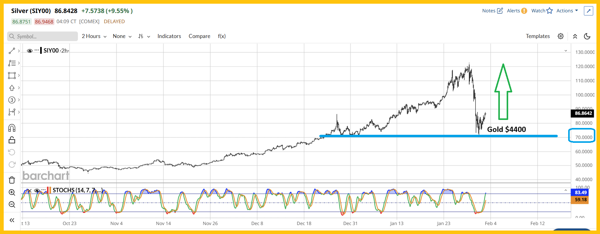 "Der Silberpreisverkauf war aufgrund der großen und hochgradig gehebelten Wetten gegen Fiatgeld „überdimensioniert“, endete jedoch in der Kaufzone von 70 Dollar, was perfekt mit dem Goldpreis von 4400 Dollar übereinstimmt.