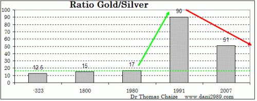 "....The price of an ounce of silver will continue to increase more quickly than that of gold. For example, if the gold price rises 100%, the price of silver can increase between 100 and 600% depending on the evolution of the ratio...." ![]()