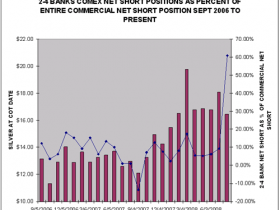 "....Die Daten bedeuten, daß weitere Fragen von den Banken-Regulierern, der CFTC oder von den Analysten, die immer noch zweifeln, daß der Markt getürkt ist, beantwortet werden sollten. Ist da eine Verbindung zwischen zwei US Banken, die weitere 27.606 Silber Future-Kontrakte (138 Mio. oz) in einem Monat verkaufen, worauf ein massiver Preisverfall beim Silber eintritt? Dies entspricht 20% der jährlichen globalen Minenproduktion oder dem ganzen COMEX- Lagerbestand, dem zweitgrößten Lagerbestand weltweit. Wie könnte ein solch konzentrierter Verkauf solcher Mengen in einer kurzen Zeit den Preis nicht beeinflussen?