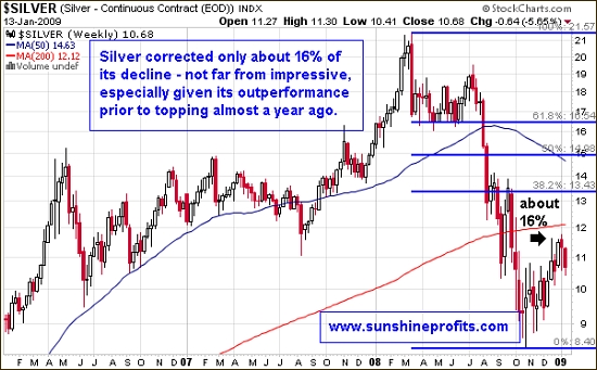 Silver’s poor performance relative to gold can be explained by its correlation with the general stock market, as well as its cyclical nature. Stocks’ valuation and the amount of money pumped into the system lately suggest that we are in the ‘oversold’ territory. Since we are not ending an upleg in the precious metals, but are rather beginning one, we should expect silver to outperform in the future...."