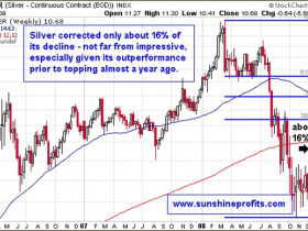 Silver’s poor performance relative to gold can be explained by its correlation with the general stock market, as well as its cyclical nature. Stocks’ valuation and the amount of money pumped into the system lately suggest that we are in the ‘oversold’ territory. Since we are not ending an upleg in the precious metals, but are rather beginning one, we should expect silver to outperform in the future...."