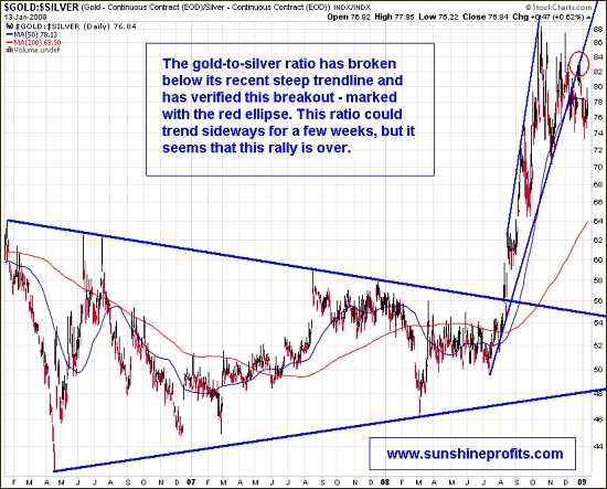 P.Radomski betrachtet aber das mittelfristige Gold : Silber - Verhältnis, Charts: