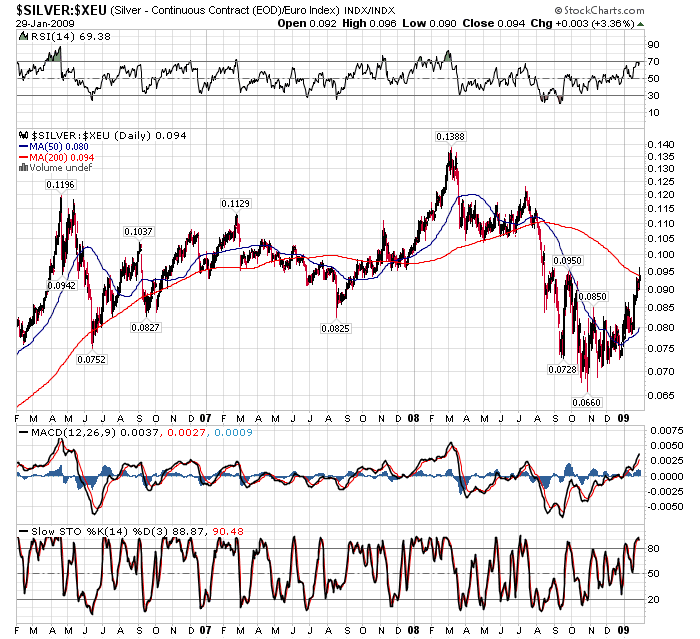 "...The conclusion is this, volatility rules and hence silver is a traders' paradise (experienced traders that is!) and while recession remains it will stay that way. Longer term investors in silver should still be buying into silver at these very low prices in anticipation of a new bull taking hold when recession ends and the trillion dollar bailouts begins to bite in terms of inflation further down the line."