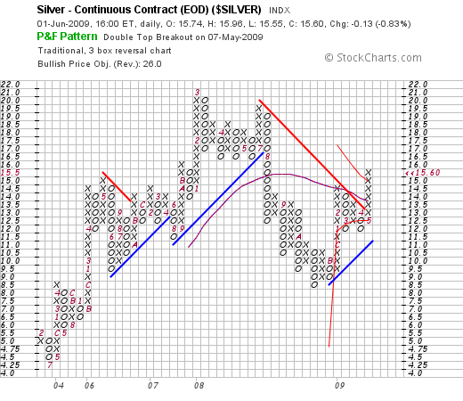 ...Our expectation is that this rally will approach the March 2008 highs of $21 but not decisively take them out. This is what we call a wave B rally. Wave A took 8 months to complete (another Fibonacci number) and this wave B will likely take as long to complete. If the wave B began in November 2008, we would expect it to finish sometime this summer....