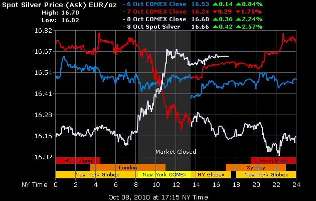 Sich für ein bestimmten $-Kurs festzulegen, ergibt ja nur wenig Sinn. Bei einem Preis 25$ und einem €/$-Wechselkurs 1:2 sind es läppische 12,50€/Oz Spot. Zwar wissen das bestimmt alle, aber ich wollte das mal gesagt haben ![]()