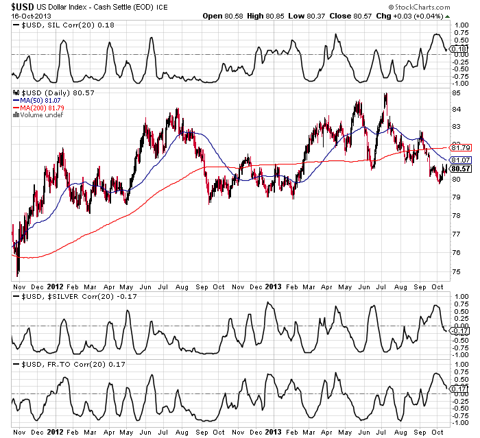 die negative correlation zwischen Silber und Dollar anschaulich darstellen