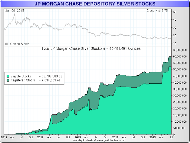 JP Morgan's (NYE:JPM) physische Silber-Bestände überschreiten Anfang Juli die Marke von signifikanten 60 Millionen Silber-Unzen. Der folgende Chart spricht wahrlich Bände..