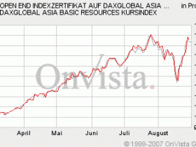 Als repräsentatives Sample einmal einen Haufen aus 15 Werten herangezogen, wie er z.B. in einem Asia Basic Resources-Zertifikat zusammengefaßt ist. Daraus ergibt sich seit März 07 bis Ende August 07 immerhin ein stolzes Plus von knapp über 70%. Es stellt sich die Frage, ob man in Zukunft mit einer nicht zu knappen Auswahl asiatischer Rohstofftitel vielleicht besser aufgehoben wäre als mit den in Kanada gelisteten hochempfindlichen Minenwerten: