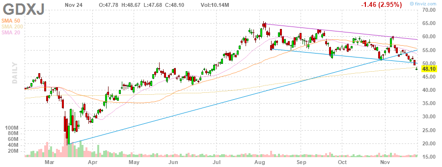 GDXJ closed at $49.56. It has a confluence of strong support around $48...."