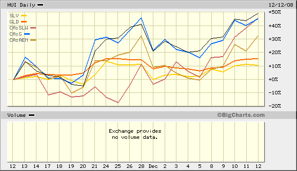 ---- Die Edelmetalle schnitten besser als der HUI ab.