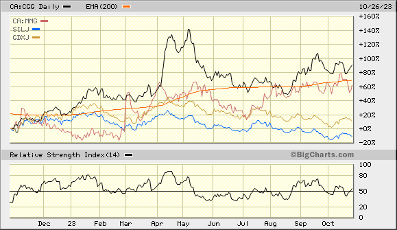 Dh. die Goldminen hebeln weiterhin mäßig vs Gold...
