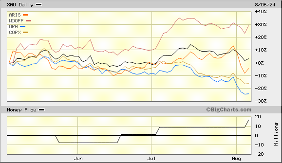 Der Goldbereich etwas erhöht, Metalle verringert; Explorer auf dem niedrigsten, Produzenten auf dem höchsten Stand,