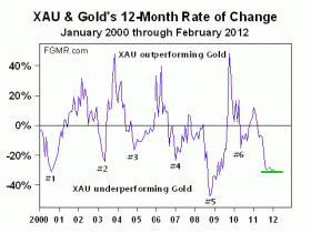 Nach meiner Überzeugung wird die extreme Unterbewertung der Minen vs. den Metallen nicht ad infinitum gehen (auf diese Situation gehe ich später mal eingehender ein) oder anders gesagt, wir näher uns der Situation, daß diese bizarre Situation endet, siehe auch hier: