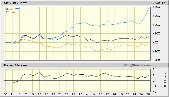 Bei erkennbarer Stärke von Silber werden Änderungen erfolgen. Angehängt 3 Monats Vergleich GDXJ: SIL : KL.