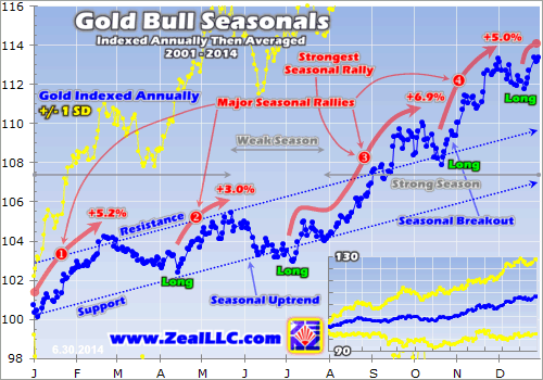 "Diese Grafik ist eine Aktualisierung meines neuesten Essays über die Gold-Sommer-Flaute von Anfang Juli. Es indexiert die Sommerperformance von Gold in allen modernen Goldbullenjahren mit den Schlusskursen im Mai. Gold hat gerade einen seiner schlimmsten Sommer in diesem Zeitraum von mehreren Jahrzehnten erlebt!.."