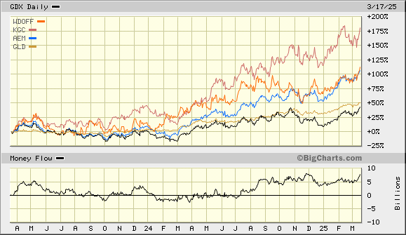 Gestern erreichten der GDX ein neues 4 1/2 J Hoch!! Und einge Goldminen mit Allzeithochs!