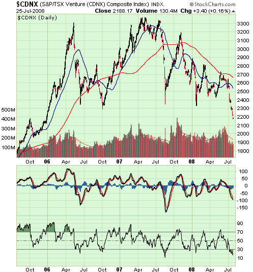 "....Our portfolio was hit by large losses in the past couple of weeks. As we have pointed out before, we are fortunate to have a sizable cash position :) which serves as a buffer against volatility. Many individual stocks that Resource Stock Guide tracks appear to be close to a bottom, after experiencing a similar meltdown as in August 2007. We continue to add shares of selective companies...."