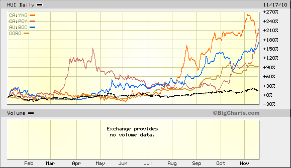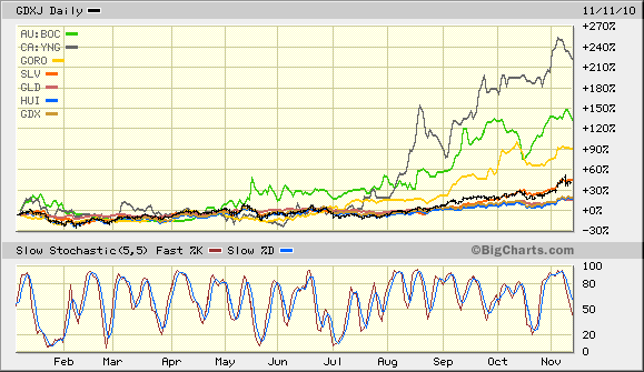 Hatte beide noch kürzlich aufgestockt. Der Vergleich mit den Edelmetall Schwergewichten oder gar dem HUI zeigt, daß sie gut mithalten, in jüngerer Zeit sogar besser performen.