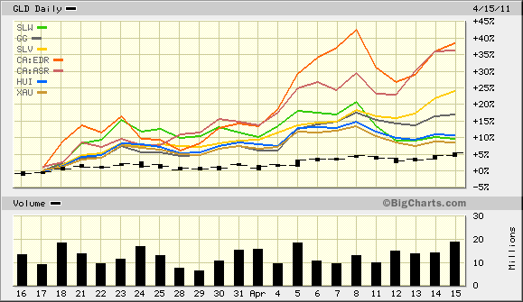 AUS $................. + 0,4 %Auffallend ist die relative Schwäche der Minen vs.Gold und insbes.Silber. Da aber auch die Platinmetalle und Rohöl sowie die Standardaktien nachgaben, sollte man zutreffender sagen: