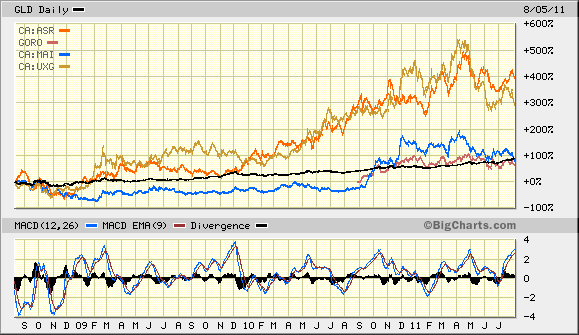 Im Hinterkopf sollte man auch die Entwicklung bei der letzten "Goldblase" vo 30 a haben: Auch hier kam es zu einem gigantischen "lagging of the mining stock" vs. gold und dann auch noch zu einem massiven Einbruch der Minen, als Gold vom ATH einmal staerker zuruecksetzte. Nachdem sich Gold auf tieferem (!) Niveau zu stabilisieren begann, kam die Stunde der Minen. Ihre Gewinne waren dann sogar noch groesser als die Gewinne von Gold selbst bis zum vorher erzielten Top. Wiederholt sich die Geschichte? Dann sollte man erst Gold bis zum Top haben, dann verkaufen ;) , den Ruecksetzer abwarten, um massiv in Minen zu switchen . Alles ganz einfach... :D :thumbup: