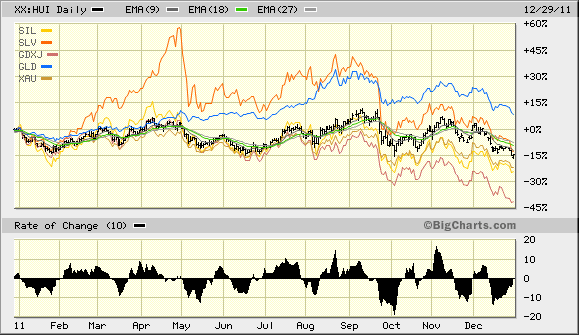Gestern fielen die Minenindices HUI, XAU und der Juniorindex GDXJ auf Jahrestiefs, der Silberminenindex liegt knapp darüber.
