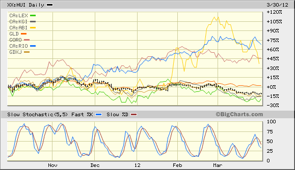 Auffallend die sehr schlechte Performance des HUI, der eigentlich die Minenspitzenaktien repräsentiert, was auch an div. Stellen im Forum erörtert wird.