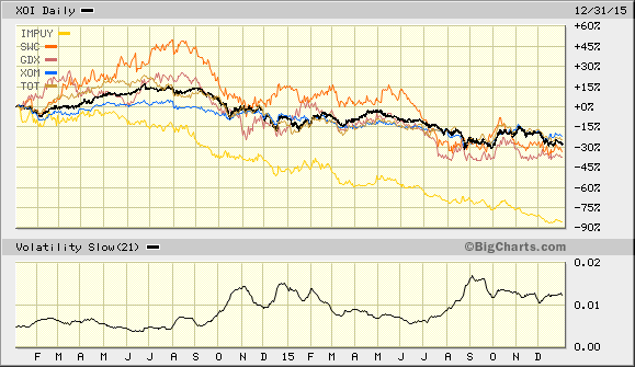 In der Tat schwere Zeiten für Investments im Rohstoffsektor. Hab mal den Ölaktienindex mit 2 erstklassigen Ölwerten, Exxon und Total herausgegriffen sowie 2 bedeutende Platinproduzenten, Impala und Stillwater gegen den GDX verglichen, die Platinaktie Lonrho ist im Forum diskutiert worden.
