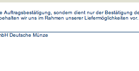 Die Frage bleibt ja, warum besagte Münzhandelsgesellschaft mit beschränkter Haftung es tage- wenn nicht sogar wochenlang zumindest zulässt, dass die Leute (mich eingeschlossen) in ihrem lemminghaften Trieb wie die Berserker blindwütig Bestellungen abfeuern, obwohl die Gesellschaft